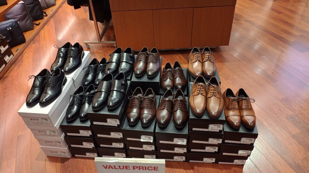 さすがですね。REGAL(リーガル)さんのおかげで地方でも本格革靴が買えるのか、REGALさんがいるとみんな満足してしまって他を求めないのかわかりませんが、ぶっちゃけこれだけあれば普通の人は十分ですよね、、、。うちも閉めようかな、、、。